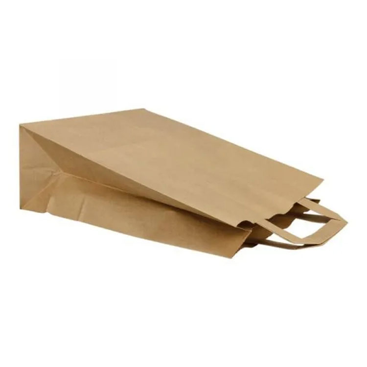 کیسه کاغذ کرافت با دستگیره های کاغذی مسطح می تواند در صنعت پذیرایی ، در سوپر مارکت و به عنوان هدایا استفاده شود. آنها از مواد قوی و بادوام ساخته شده اند ، می توانند چندین بار مورد استفاده مجدد قرار بگیرند ، کمپوست و زیست تخریب پذیر هستند.